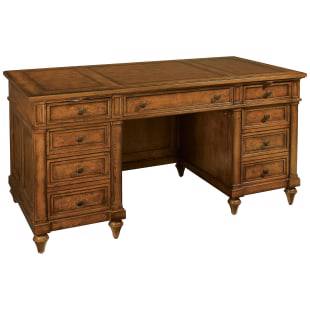 Select solids with ash and ash burl veneers.Urban Ash Burl finish.Top is comprised of leather with blind tooling in three panels.Wire management.Four box drawers.Two file drawers on metal slides.Drop-front center drawer with keyboard pull-out and wrist rest.Secretarial pull-out work surface.Pull-out writing surface over each pedestal.Some assembly required.Overall Width 60" (152 cm)Overall Depth 30" (76 cm)Overall Height 30.75" (78.10 cm)Kneehole Width 23.5" (60 cm)Kneehole Height 23.75" (60 cm)