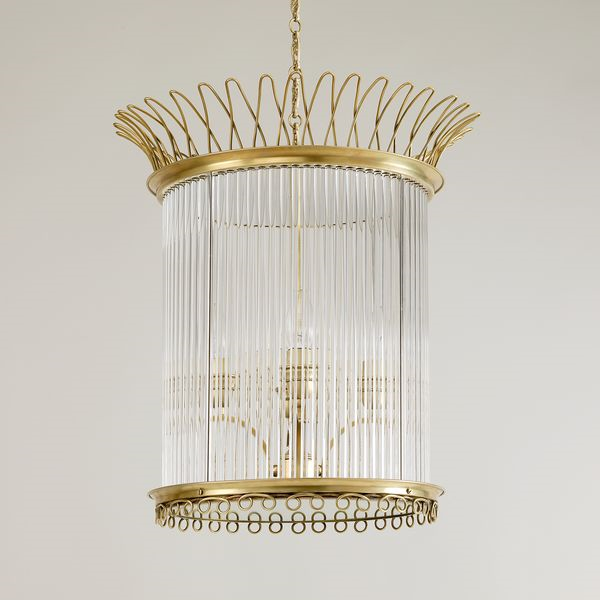 Based on a 1940s antique, this lantern is highly decorative. The glass rods and elaborate internal fitting are beautifully made.Brass