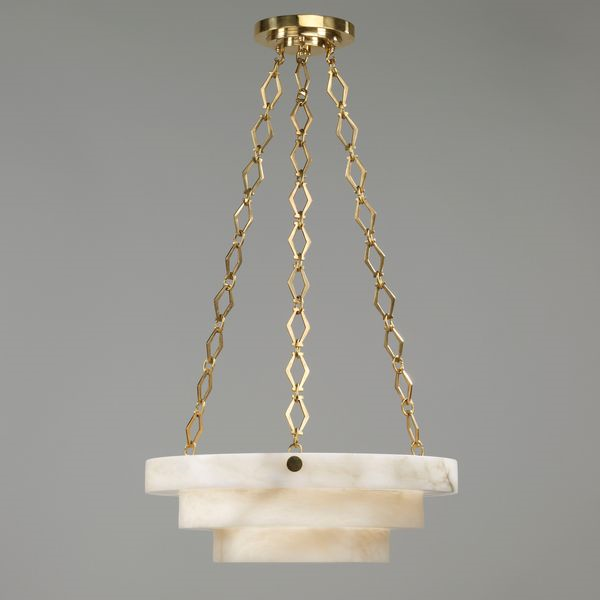 Influenced by an Art Deco antique we admired in a Parisian flea market, this light is understated in style. The Italian alabaster bowl pairs beautifully with the diamond-patterned chain.Brass