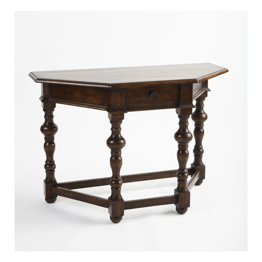 Italian alder console with turned legs, stretcher, and center drawer. Hand-planed and distressed.