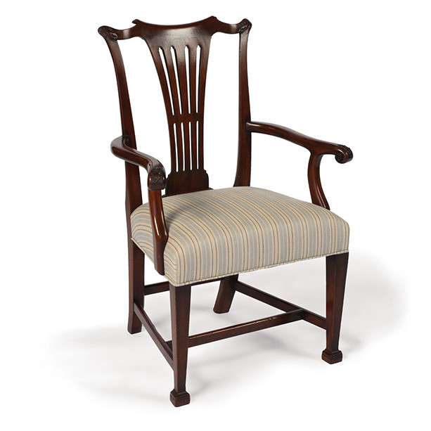 Description : English armchair made of mahogany with flat self welt detail. Material : Mahogany Finish : 10 Cabernet Fabric Shown : JW 4501 Positano - Blue COM : 1 Yd COL : 18 Sq Ft