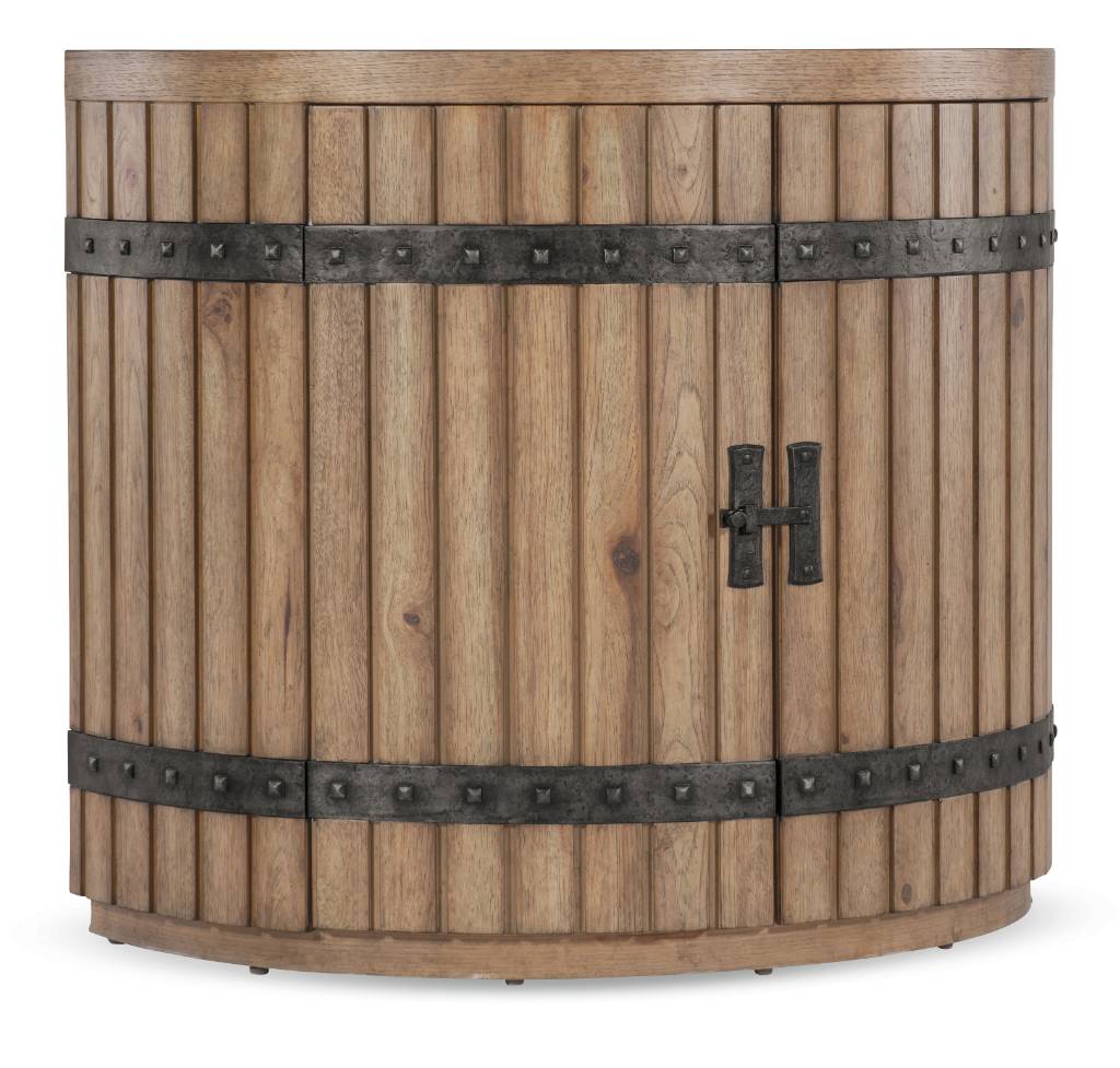 Collection Features: Hooker Furniture's Vineyard Row is inspired by the organic beauty of California wine country, the whole home collection embraces the rustic charm and organic aesthetic of Sonoma and Napa Valley. Crafted with Pecky Hickory veneers, it is available in the main finish, Sonoma, which offers a light and airy vibe, reminiscent of the crisp white wines of the Sonoma region. The Napa finish, featured on select pieces, exudes a darker aesthetic inspired by the robust red wines of Napa Valley. Designed to work within a variety of lifestyles and geographies, the light finish with the dark accent finish allows it to transition between rustic settings as well as more refined environments. Influenced by Spanish missions, quaint bungalows and local architecture, Vineyard Row seamlessly blends earthy elements with sophisticated design. Details including high-low veneer planking, rustic hammered metal bar hardware, metal stretchers and seeded glass add to its authentic style.