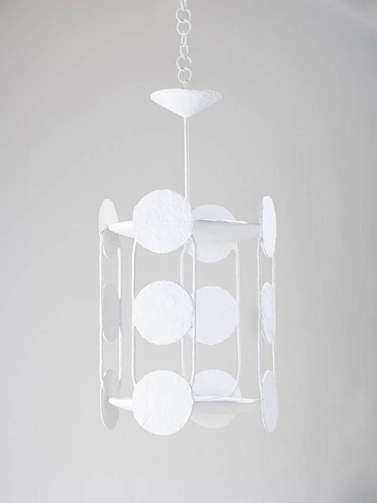 The Viola Lantern is the first piece that Viola Lanari designed for Porta Romana. LED lights are concealed within the piece to create multiple eclipses when lit.