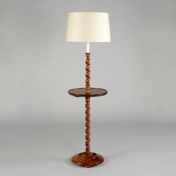 Based on a lamp we admired in an upstate New York house, this design is defined by its hand-carved twisted central column. The column unifies with the rounded tiered base and the simple table to create a lamp of versatility and character.