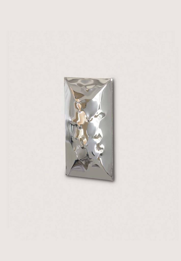 The Small Waterfall Wall Light is formed of metal sheet, that has been hammered and polished to give it a rippled reflective quality.