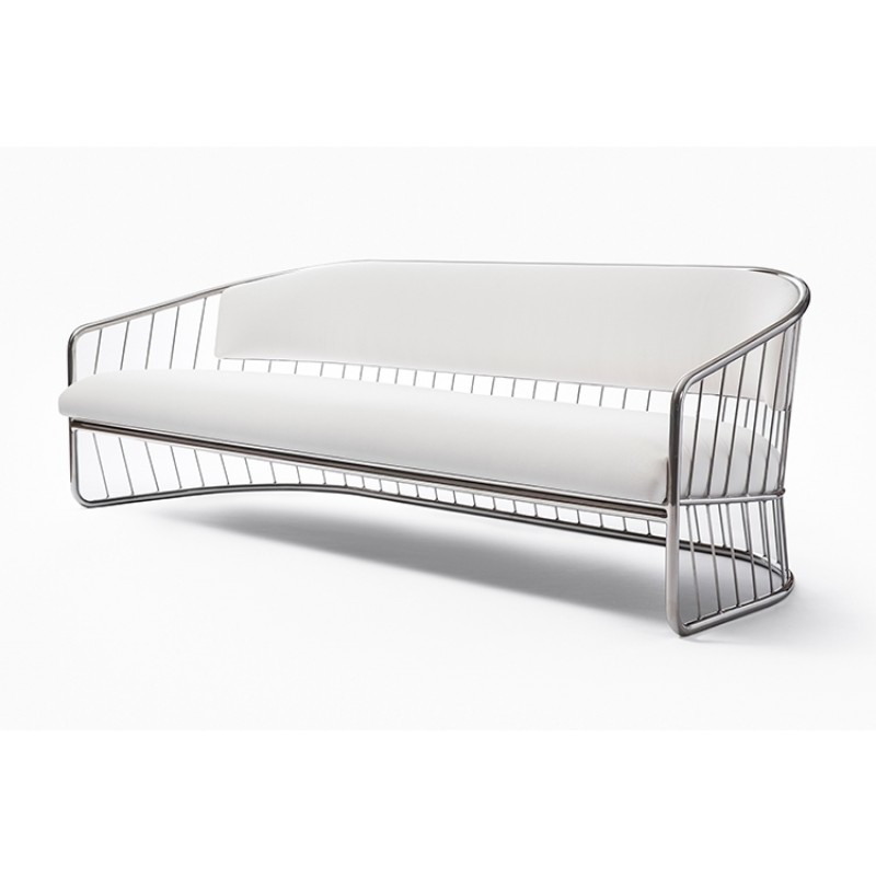 6 yds seat and back cushion84" W x 32" D x 27.5" H, 15" SHPolished Stainless SteelThree back pillows (COM 3 yds)300350240