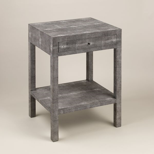 The faux shagreen finish on this bedside table enhances the simple shape. The shagreen wraps around the entire table to create a rich textural effect.Gilt (Mirror)