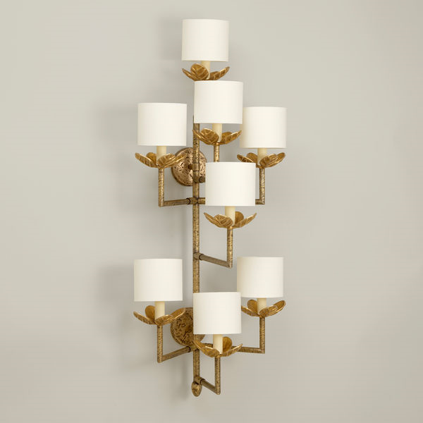 Inspired by a French 20th century antique, this wall light features distinctive sculpted leaves. The randomly pitted metalwork adds texture to this characterful, contemporary piece.
